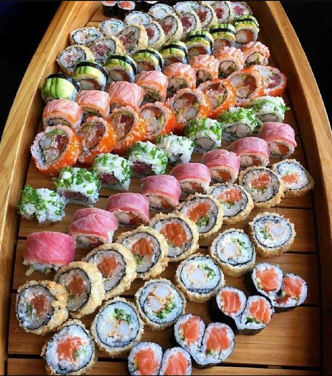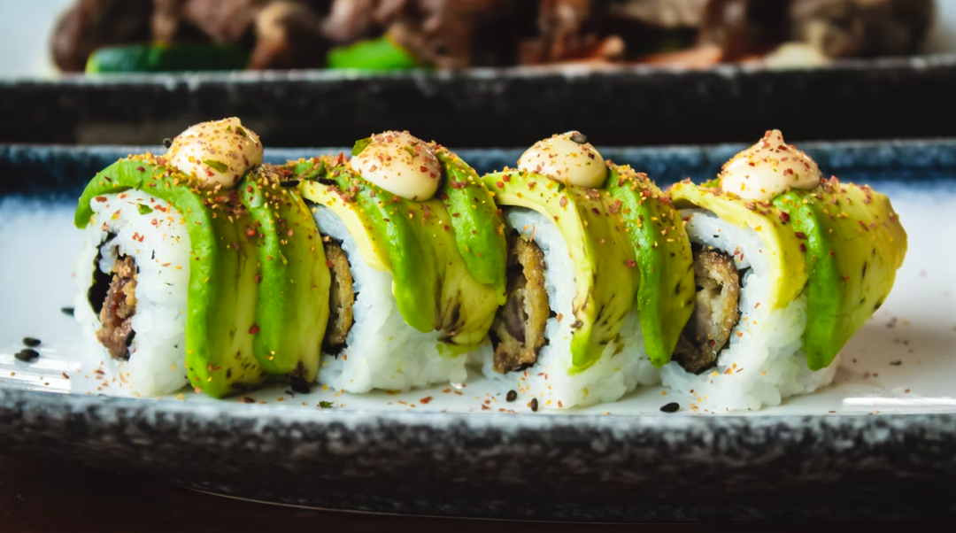 Sushi met gefrituurde ingrediënten en krokante tempurakorstjes.