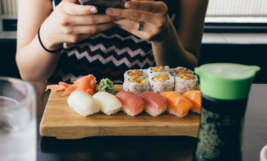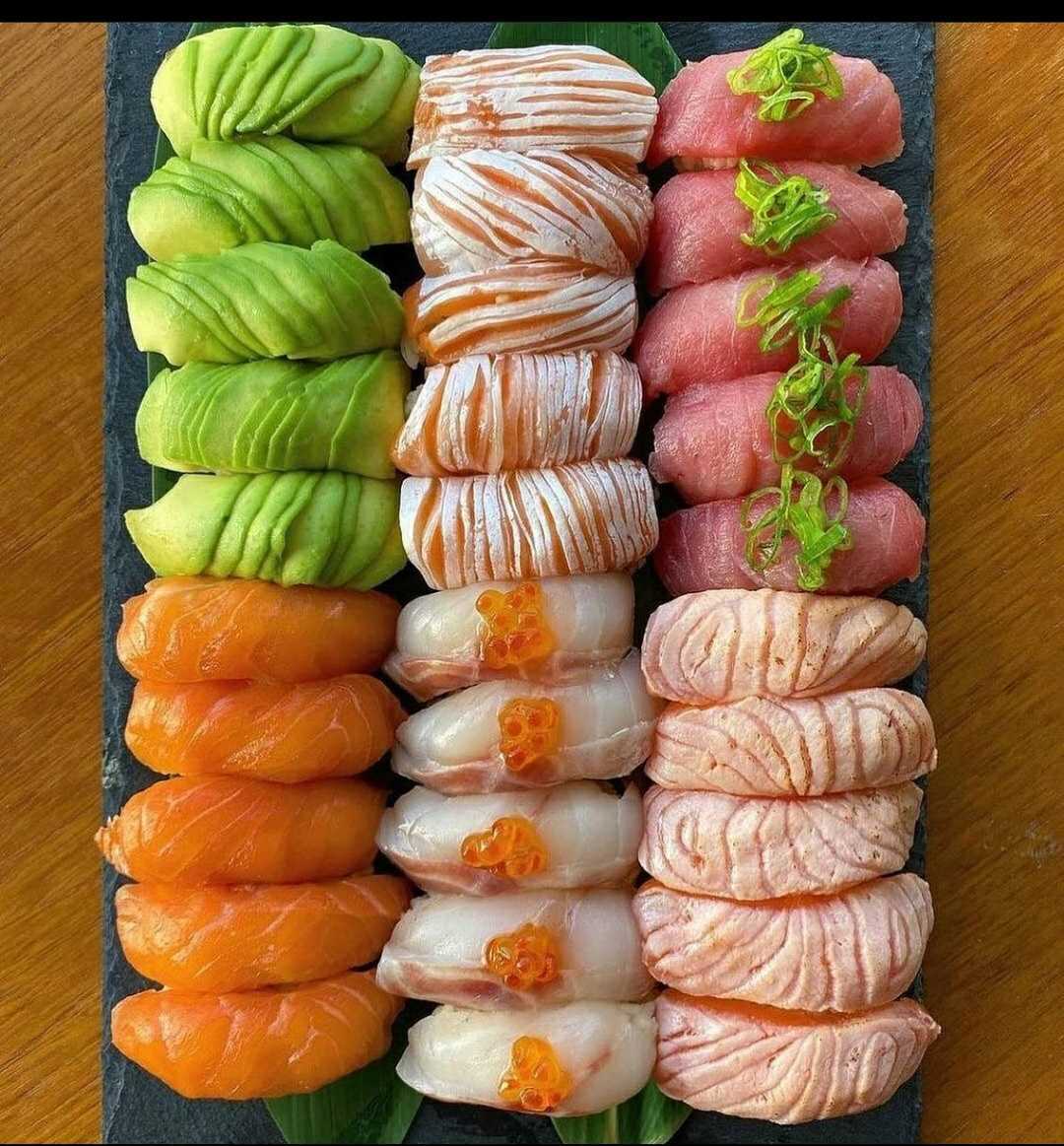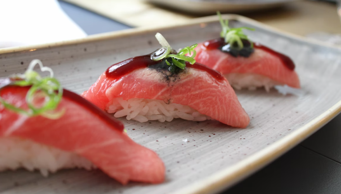 Dikke of dunne plakjes rauwe vis zonder rijst.